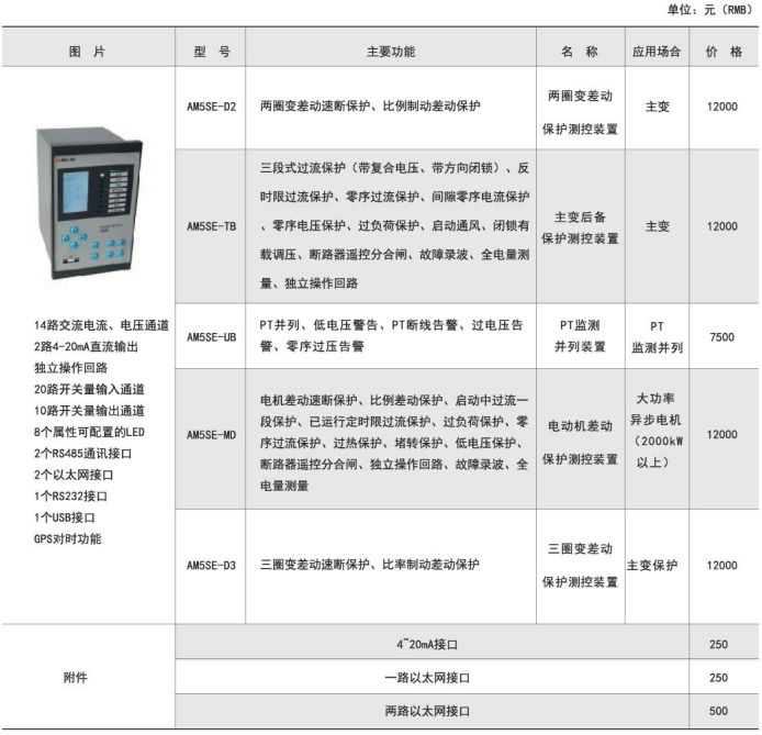 AM6-D2 變壓器差動保護裝置(二繞組) 110kV及以下電壓等級容量為6300kVA及以上的變壓器