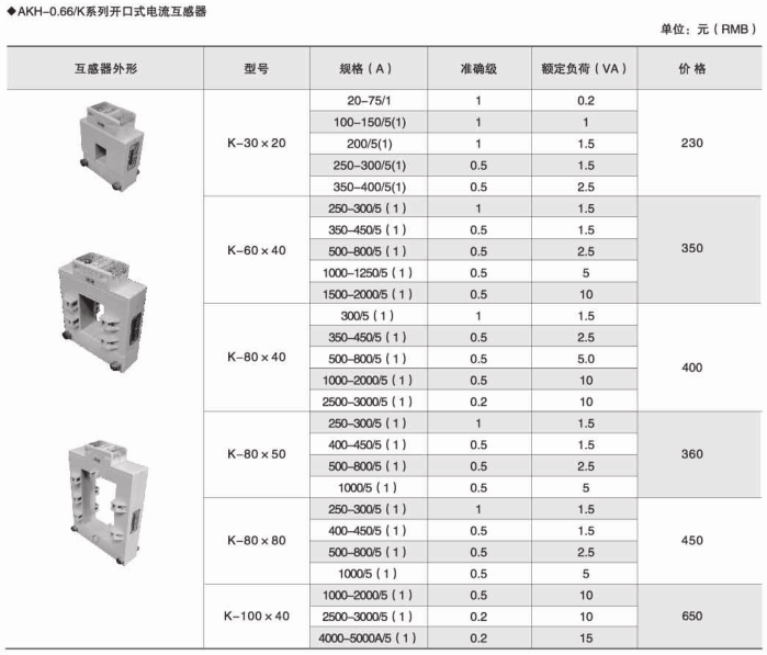 具體型號:AKH-0.66/K K-80*50 800AKH-0.66/K開口式電流互感器