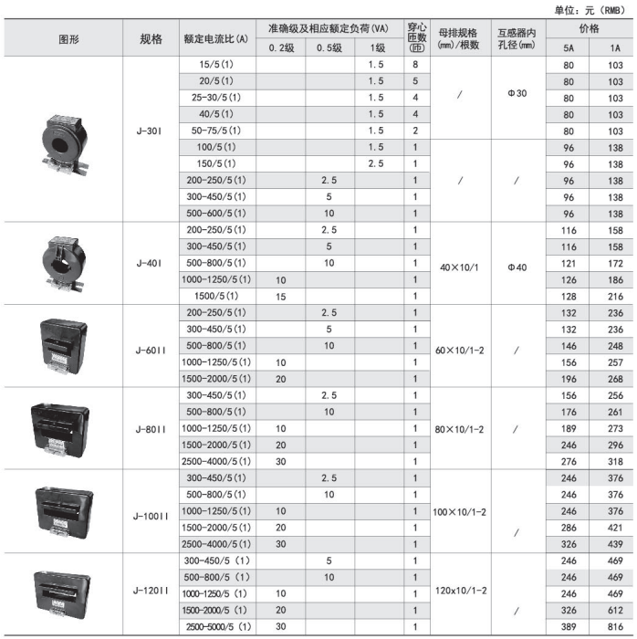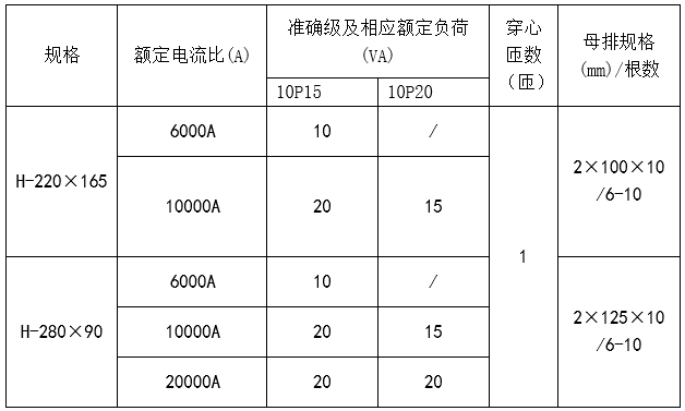 | 規(guī)格 | 額定電流比(A) | 準(zhǔn)確級(jí) | 穿心匝數(shù) | 母排規(guī)格/根數(shù) | |