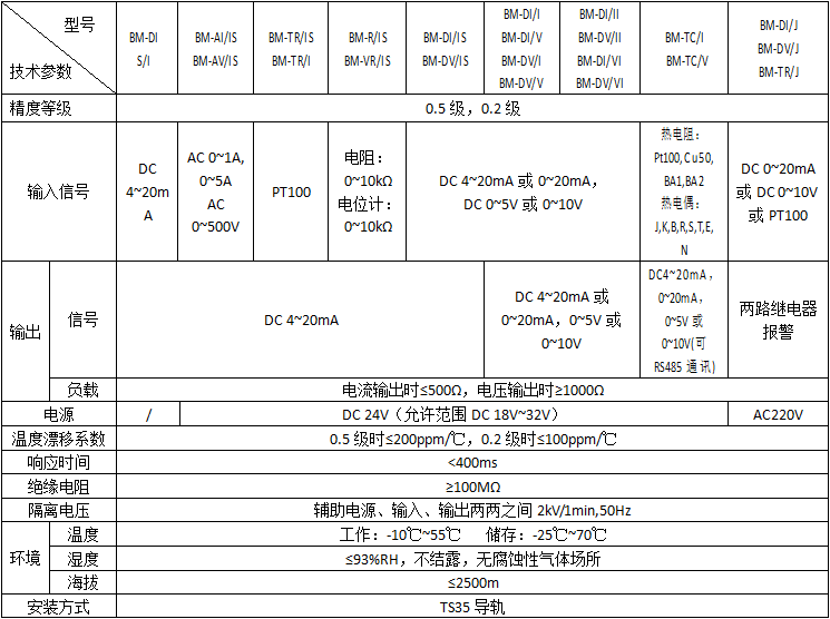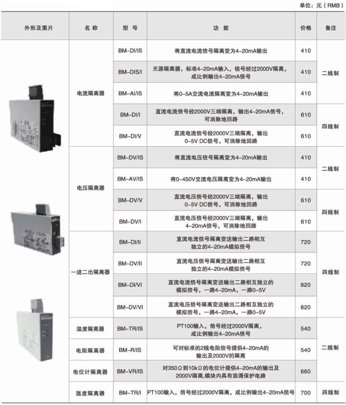 BM-DI/I 直流電流信號經2000V三端隔離,輸出4-20mA信號,可消除地回路 四線制