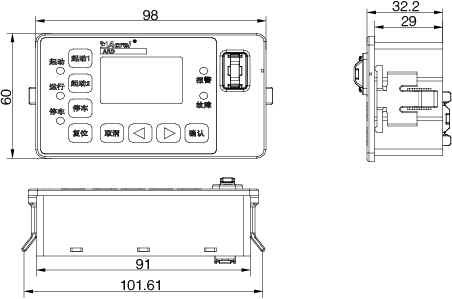 防護等級 主體IP20,分體顯示模塊IP45(安裝在柜體上)