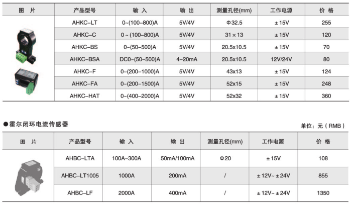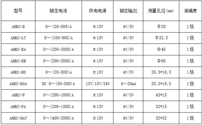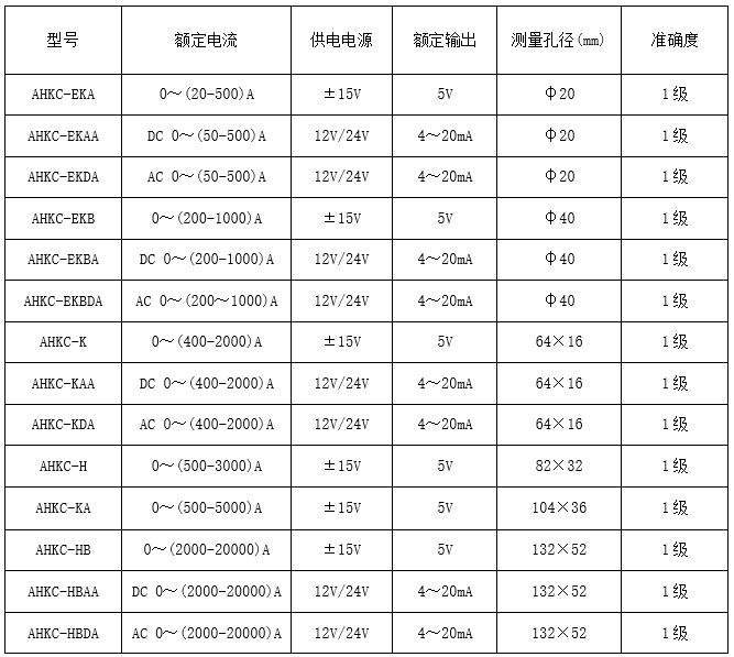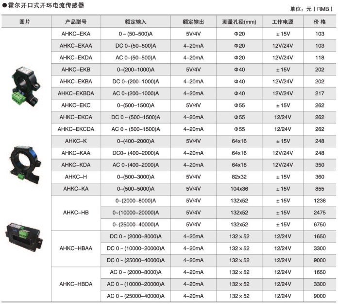 具體型號:AHKC-EKAA DC300A/4-20mA● 開口式開環(huán)霍爾電流傳感器