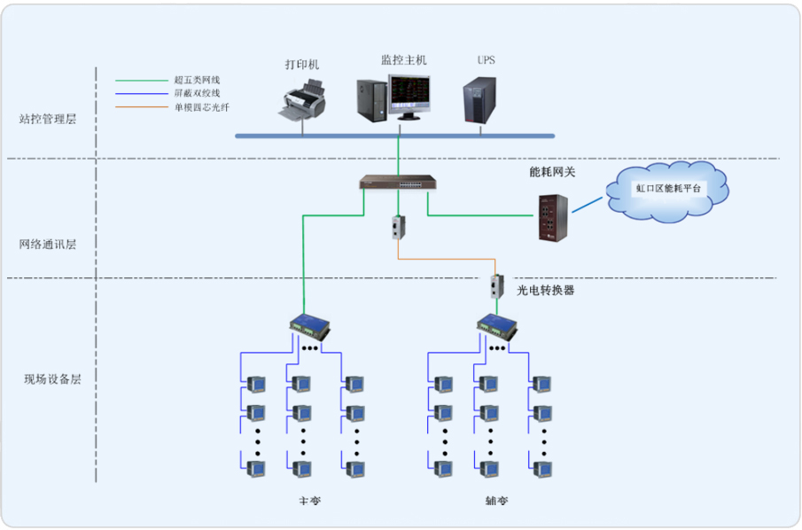 根據上海虹口區的相關能耗導則,現針對虹口區的兩個變電所實現能耗的實時監控,并按照區域能耗平臺的數據要求,將虹口足球場的用能分為空調用電、照明插座用電、動力用電以及特殊用電,將以上數據不間斷上傳至虹口區能耗平臺。