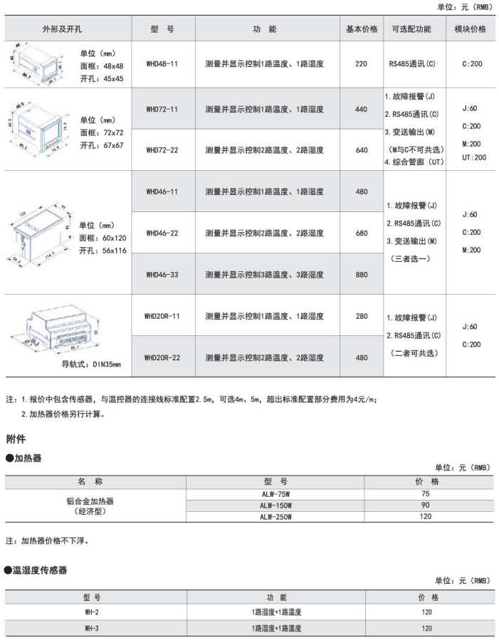 WHD系列溫濕度控制器運用傳感器檢測柜內的溫度與濕度值,并通過控制外接的風扇與加熱器對溫度與濕度值進行調節,可有效防止因低溫、高溫造成的設備故障以及受潮或結露引起的爬電、閃絡事故的發生。
