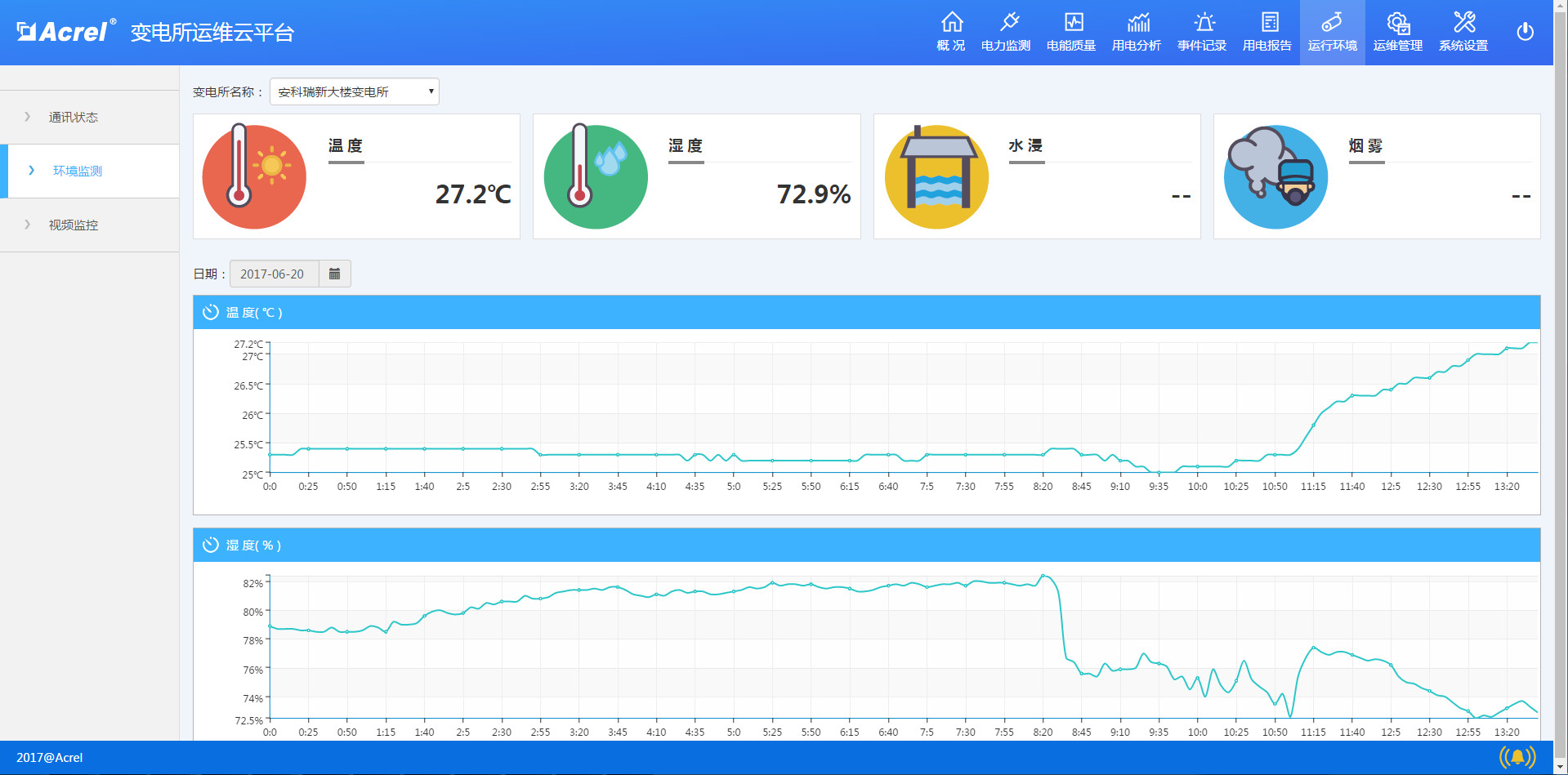顯示某個(gè)變電所的儀表通訊狀態(tài)、環(huán)境信息(溫度、濕度、水浸、煙霧等)、視頻信息等。