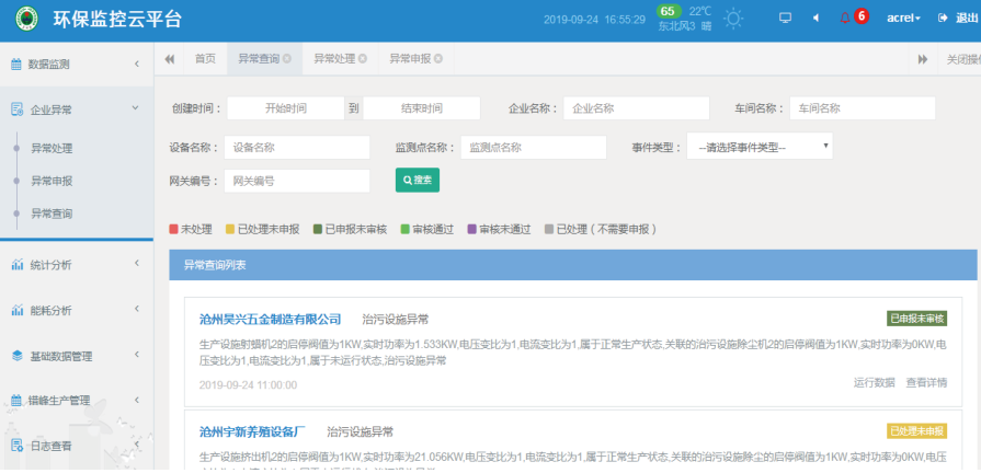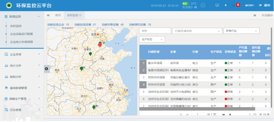 全面推進打贏藍天保衛(wèi)戰(zhàn),打好碧水保衛(wèi)戰(zhàn),打勝凈土保衛(wèi)戰(zhàn),加快生態(tài)環(huán)境保護、建設美麗中國。環(huán)保用電監(jiān)管系統(tǒng)針對企業(yè)內(nèi)的環(huán)保設施、設備運行狀況進行檢測,發(fā)揮環(huán)保設備的作用,提高監(jiān)察效率,并能夠動態(tài)掌握治污治理執(zhí)行情況和異常預警提供支持,安科瑞憑借監(jiān)控領域里多年的技術力量和豐富經(jīng)驗,創(chuàng)新研發(fā)了AcrelCloud-3000環(huán)保設施用電監(jiān)管云平臺,依托快速發(fā)展的物聯(lián)網(wǎng)技術、電力參數(shù)傳感技術,實時采集企業(yè)總用電、工藝生產(chǎn)設備用電、污染治理設施設備用電等數(shù)據(jù),通過設施運行停車分析、越限分析、停/限產(chǎn)分析、工藝關聯(lián)分析等,及時發(fā)現(xiàn)環(huán)保治理設施、設備等未開啟、空轉、減速、降頻以及異常關閉等未正常工作的情況;同時,通過數(shù)據(jù)分析,還可以實時監(jiān)控限產(chǎn)和停產(chǎn)整治企業(yè)運行狀態(tài)。應用范圍: